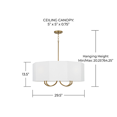 - • DIMENSIONS: 29.5in W x 13.5in H; Adjustable Hanging Height: 20.25in - 64.25in; Includes 12in Chain; 120in Wire