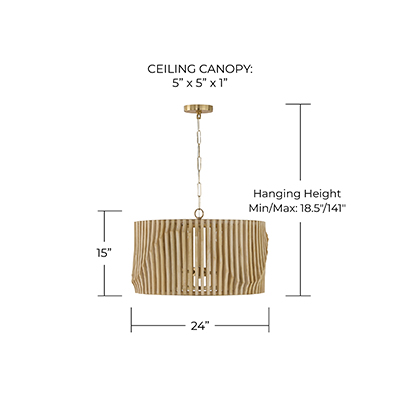 - • DIMENSIONS: 24in W x 15in H; Adjustable Hanging Height: 18.5in - 141in; Includes 120in Chain; 180in Wire