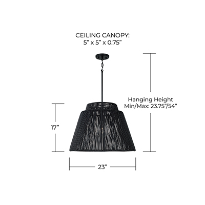 - • DIMENSIONS: 32.25in W x 14.5in H; Adjustable Hanging Height: 18in - 140.5in; Includes 120in Chain; 180in Wire