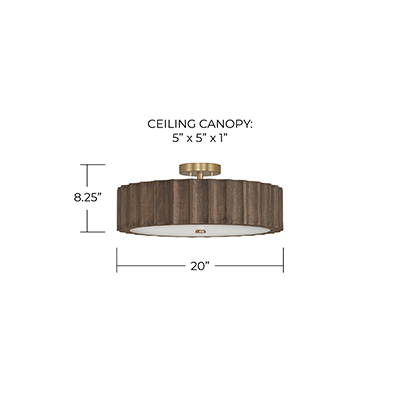 Carved by hand, the dramatic reversed-flute pattern creates textural appeal in the Cody Semi-Flush. The White acrylic diffuser brings a polished look and pairs gorgeously with the Nordic stained mango wood, while the Matte Brass finish adds a touch of shine to the large-scale silhouette.