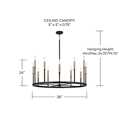 - • DIMENSIONS: 36in W x 24in H; Adjustable Hanging Height: 24.75in - 74.75in; Includes 12in Chain; 120in Wire