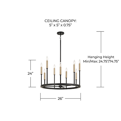 - • DIMENSIONS: 26in W x 24in H; Adjustable Hanging Height: 24.75in - 74.75in; Includes 12in Chain; 120in Wire