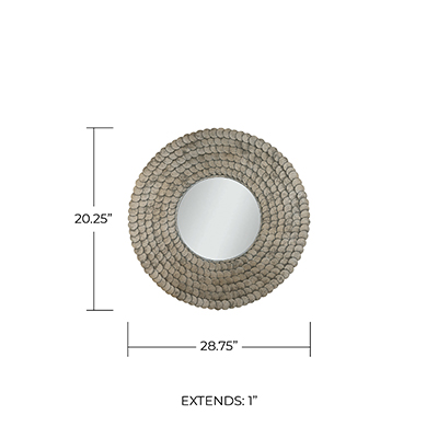 Handcrafted overlapping metal discs bring stunning texture to the Delphine 32.5 inch Mirror. With the visual character of the Grecian Pewter finish, each disc beautifully attracts the light in its own way, creating a sense of motion on the circular silhouette.