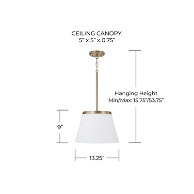 - • DETAILS: The tapered Soft White glass shade and clean lines create sophisticated style in an Aged Brass finish.