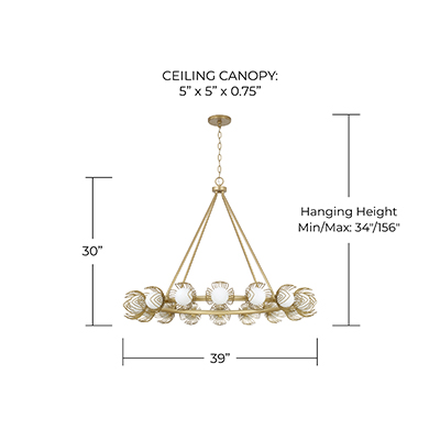 - • DIMENSIONS: 39in W x 30in H; Adjustable Hanging Height: 34in - 156in; Includes 120in Chain; 180in Wire
