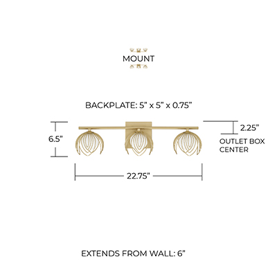Romantic and artful, the Flora 3-Light Vanity exudes botanical charm in powder room settings. Soft White glass globes are surrounded by a floral motif of delicate bent wire petals, finished in our signature Buffed Gold to bring a vibrant, warm hue to this showstopping style. Also available in a 2-Light.