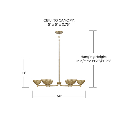 - • DIMENSIONS: 34in W x 18in H; Adjustable Hanging Height: 18.75in - 68.75in; Includes 12in Chain; 120in Wire
