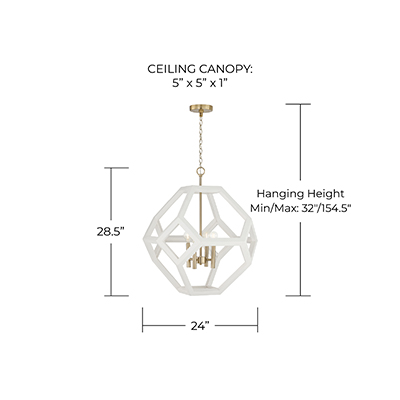 - • DIMENSIONS: 24in W x 28in H; Adjustable Hanging Height: 32in - 154.5in; Includes 120in Chain; 180in Wire