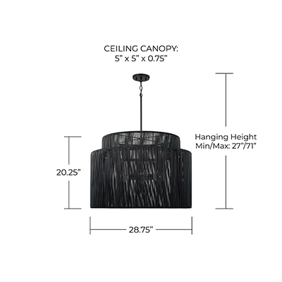 - • DIMENSIONS: 28.75in W x 20.25in H; Adjustable Hanging Height: 27in - 71in; Includes 12in Chain; 120in Wire