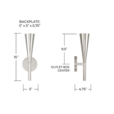 Backplate Dimensions: 5"W x 5"H x 0.75"E