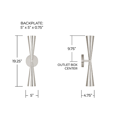 Backplate Dimensions: 5"W x 5"H x 0.75"E