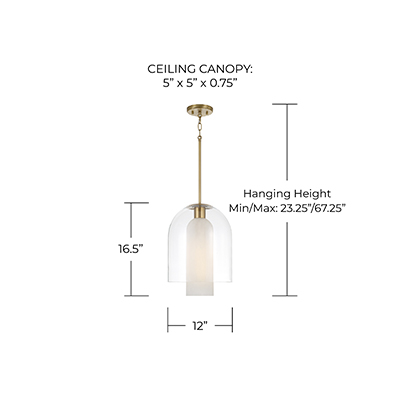 Illuminate layered luxury with the Liz Pendant. Surrounded by a Clear glass cloche, the inner Faux Alabaster glass creates a beautiful, soft glow of light. The offset lengths evoke a tiered silhouette, balanced beautifully by the shine of the Aged Brass details.