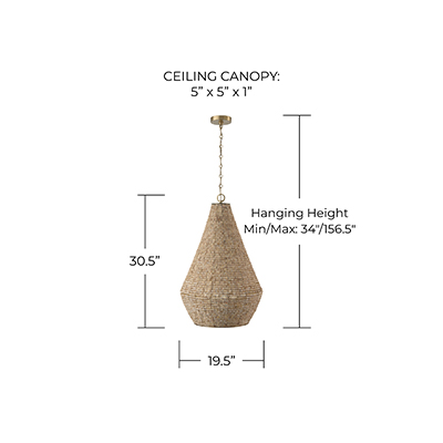 - • DIMENSIONS: 20in W x 30.5in H x 20in E; Adjustable Hanging Height: 34in 156.5in; Includes 120in Chain; 180in Wire