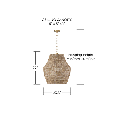 - • DIMENSIONS: 23in W x 27.5in H x 23in E; Adjustable Hanging Height: 30.5in 153in; Includes 120in Chain; 180in Wire