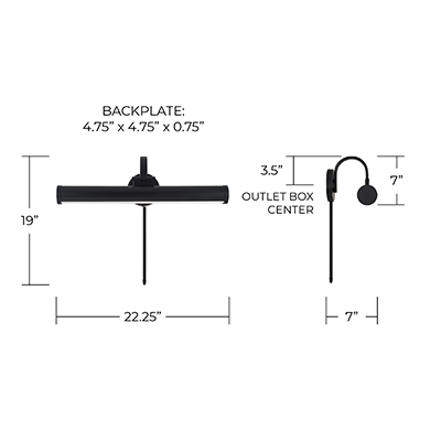 - • DIMENSIONS: 22.25in W x 7in H x 7in E