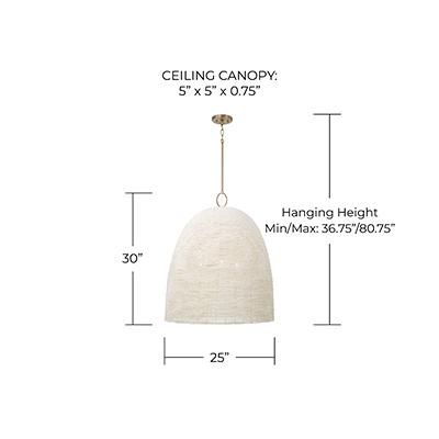 - • DIMENSIONS: 25in W x 30in H; Adjustable Hanging Height: 36.75in - 80.75in; Includes 12in Chain; 120in Wire