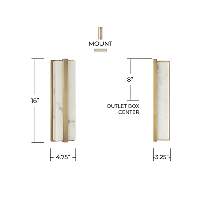 - • DETAILS: Streamlined and sleek, the rectangular form is crafted from Alabaster Glass with a full length Aged Brass backplate and band, plus integrated LED technology.