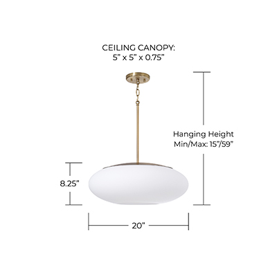 Create a serene aesthetic with the Soren Pendant. The Soft White glass oval illuminates a harmonious, ambient glow, while the Aged Brass finish brings a classic shine to the crisp lines and sleek details. Open on the bottom for easy lightbulb swaps.