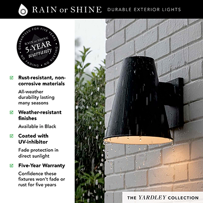 - • FEATURES: Rated for Wet Locations; Includes a 5-Year Manufacturer Warranty Against Rust and Fading.